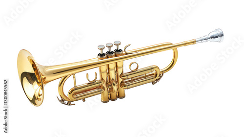 © Zulfiqar, Obraz premium Shiny brass trumpet, isolated on white background
