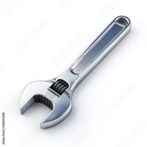 Obraz premium Shiny Chrome Adjustable Wrench Tool Isolated on White Background Perfect for Repair Maintenance and DIY Projects