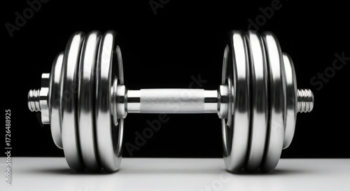© png stock, Naklejka premium Shiny chrome dumbbell on a dark background