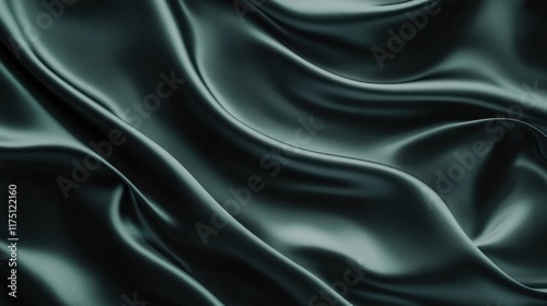 Obraz premium Shiny dark green satin fabric with wavy folds and smooth textures, offering a luxurious, wide background for text and design use