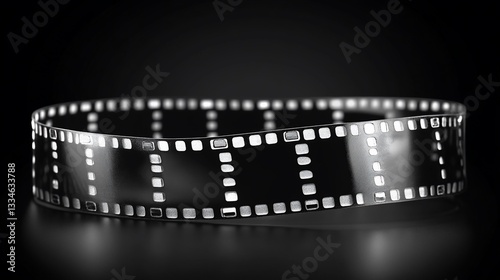 Obraz premium Shiny film strip curves in a loop, isolated against a black background