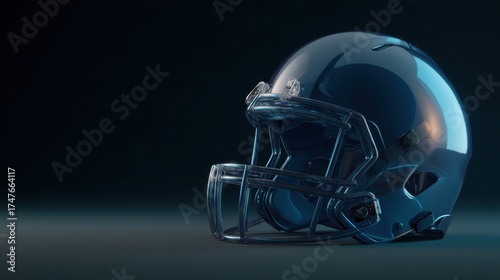 © Artittaya, Naklejka premium Shiny Football Helmet Displayed on Dark Background with Studio Lighting for Sports and Athletic Themes