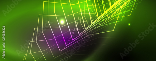 © antishock, Obraz premium Shiny glowing design background, neon style lines, technology concept, vector