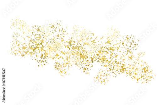 © Rhidona, Fototapeta premium Shiny gold glitter. Pieces flakes of golden flakes shimmer, gold foil on vertical transparent background. Abstract png design element