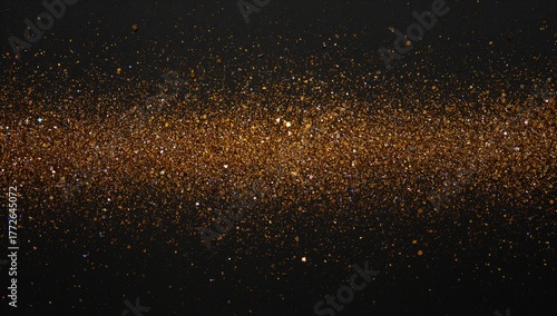 © AkuAku, Fototapeta premium Shiny golden glitter scattered on a black surface, ideal for creative projects
