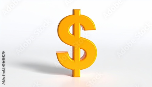 Fototapeta premium Shiny, golden, three-dimensional dollar sign casting a shadow on a white surface