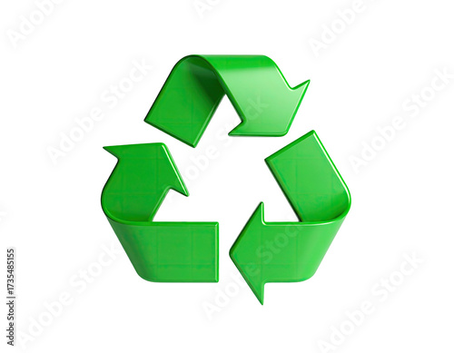 © Bliez, Obraz premium Shiny green arrows form a three-loop symbol against a solid black backdrop