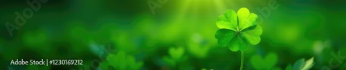 Naklejka premium Shiny green light illuminating a single clover bloom, nature, bloom, clover