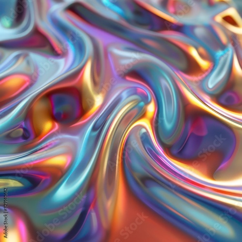 © Habib, Fototapeta premium Shiny liquid metallic texture wavy design