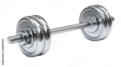 Fototapeta premium Shiny Metal Dumbbell with Textured Handle and Screw Lock, cut out transparent