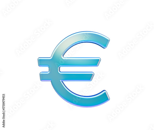 © Hammad, Fototapeta premium Shiny, metallic blue Euro currency symbol with reflective surface. 3d illustration