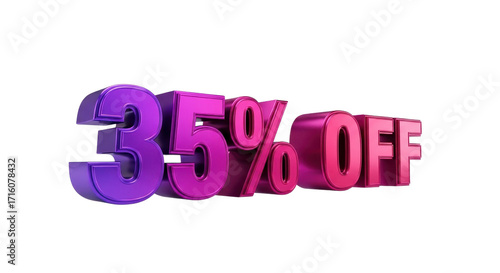 © Muniba, Fototapeta premium Shiny Metallic 3D Render of "35% OFF" Discount Text Isolated on White Background
