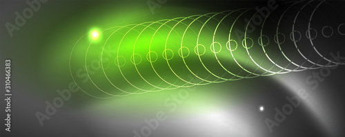 © antishock, Obraz premium Shiny neon techno template. Neon lines background, 80s style laser rays
