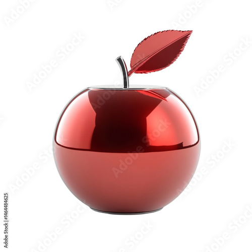 © Tohamina, Obraz premium Shiny red apple with a leaf a 3D render