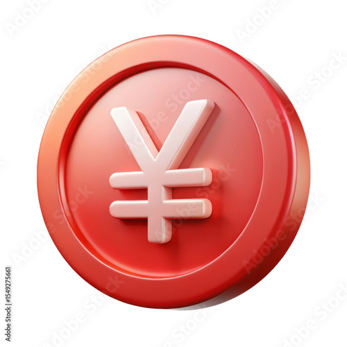 © Digital, Obraz premium Shiny red coin with yen symbol 3d rendering in plastic style isolated on background