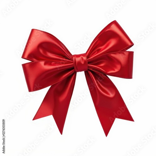 © Grapy Media, Fototapeta premium Shiny Red Decorative Bow Ornament Festive Celebration Object Decoration Item Present Ribbon Isolated