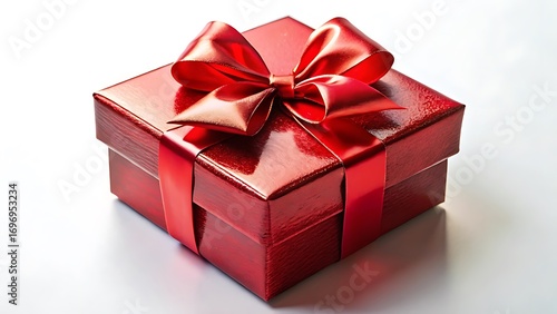 © Shibu, Obraz premium Shiny red gift box with a bow isolated on white background for celebration