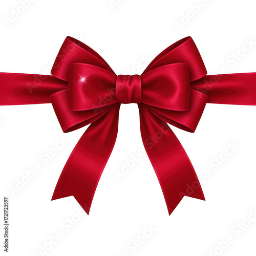 Fototapeta premium Shiny red satin ribbon bow isolated on transparent background