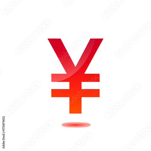 © mian, Obraz premium Shiny Red Yen Symbol on Black on transparent background