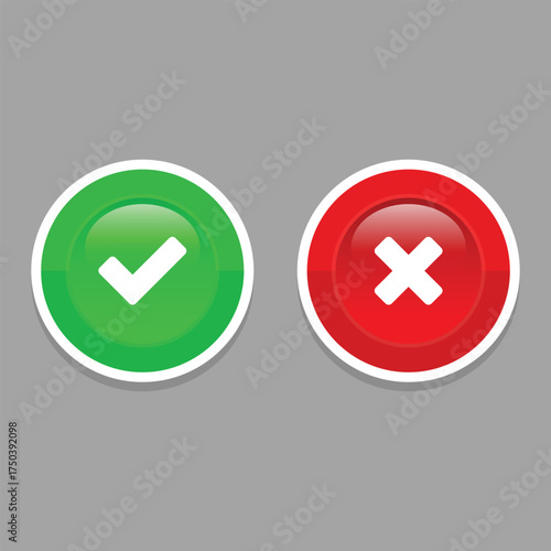 © KAWIVA, Obraz premium Shiny Round Check Mark and Cross Mark Icon Button Element