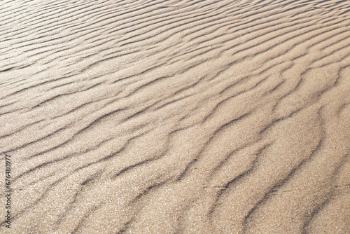 Fototapeta premium Shiny sand with a wavy pattern, sparkles in the sun, soft focus.
