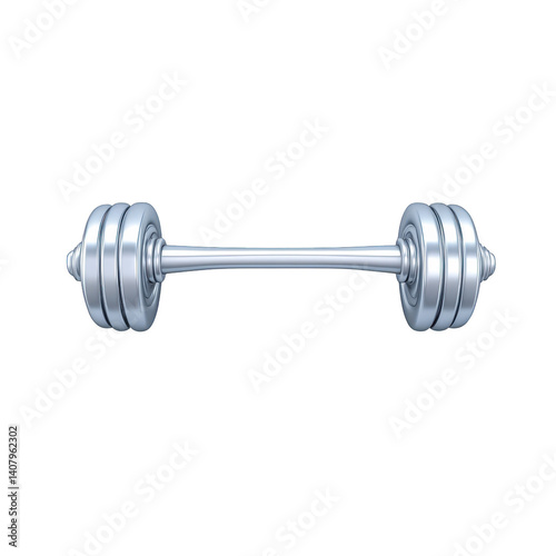 © Rattanathip, Fototapeta premium shiny silver dumbbell with multiple weight plates is centered on plain background, symbolizing strength and fitness. metallic finish reflects light, highlighting its sleek design
