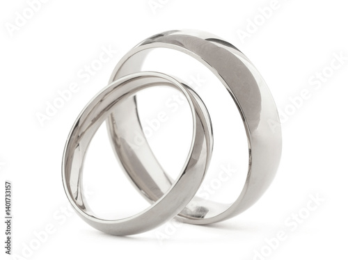 © New Africa, Fototapeta premium Shiny silver wedding rings isolated on white