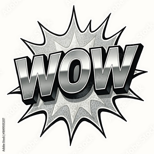 © Evi, Fototapeta premium Shiny Silver WOW Text in Comic Explosion Bubble.