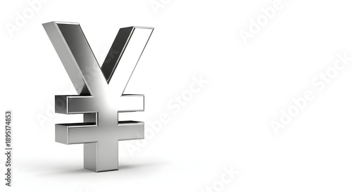 © A5, Obraz premium Shiny Silver Yen or Yuan Sign Isolated on Clean White Background