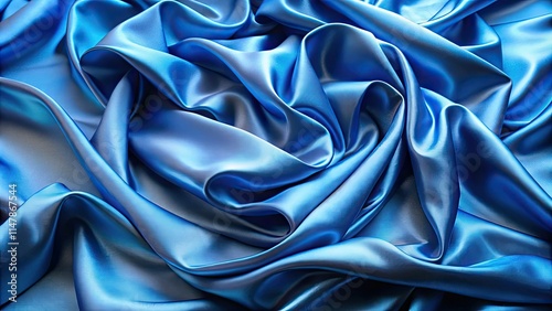 Obraz premium Shiny, smooth blue silk satin flows elegantly in a wave. Aerial photography captures its luxurious texture.
