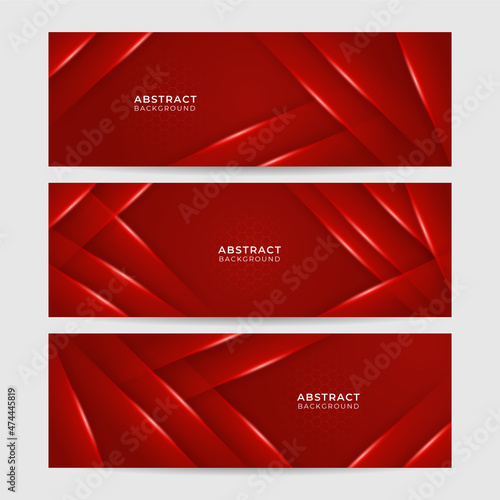© SyahCreation, Fototapeta premium Shiny Wave Red Abstract Geometric Wide Banner Design Background