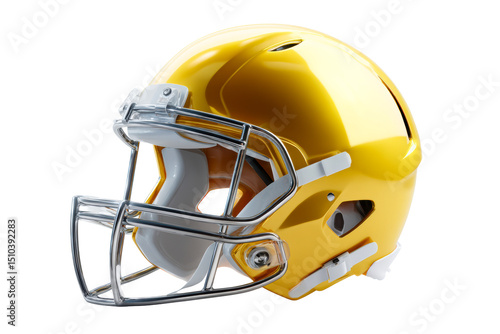 Fototapeta premium Shiny yellow football helmet with face guard on transparent background