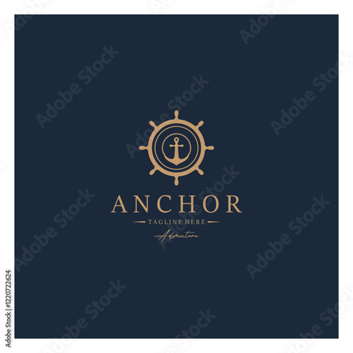 Naklejka premium ship anchor logo design with rope vintage, for, boat, marine, yacht, business, emblem, nautica, shipping company