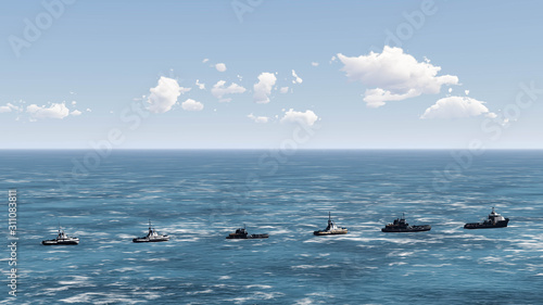 © Lasha Kilasonia, Obraz premium Ship in Ocean, Sea Ship, 3D Rendering
