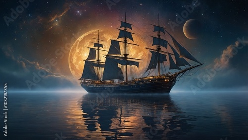 © Настя В, Fototapeta premium ship in the night