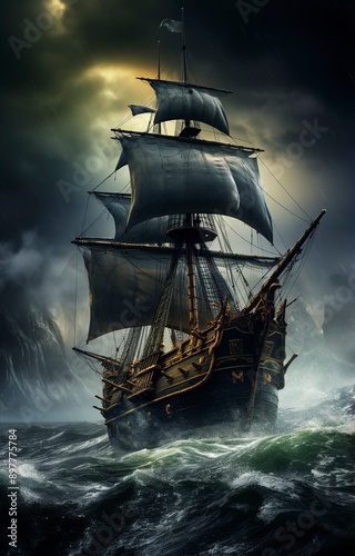 © Dzikrul Husnani, Fototapeta premium ship in the sea background , generative ai