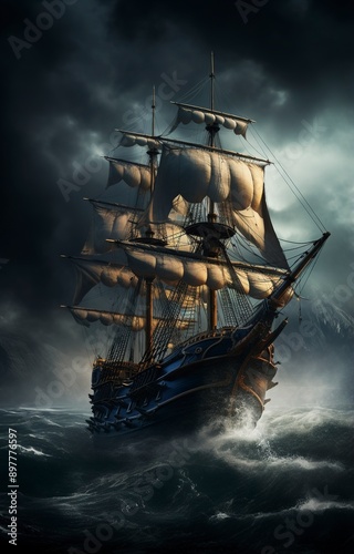 © Dzikrul Husnani, Fototapeta premium ship in the sea background , generative ai