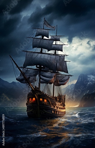 Fototapeta premium ship in the sea background , generative ai