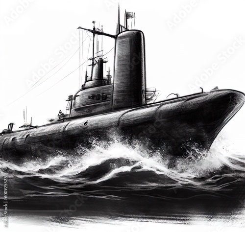 Fototapeta premium Ship in the sea submarine drawing charcoal and pencil realistic style. Generative AI