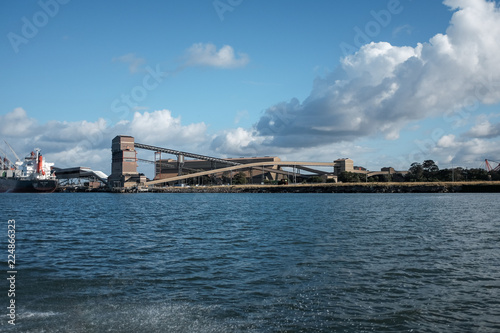 © SCLifestyle, Obraz premium Ship loading dock on harbour beneath cloudy sky