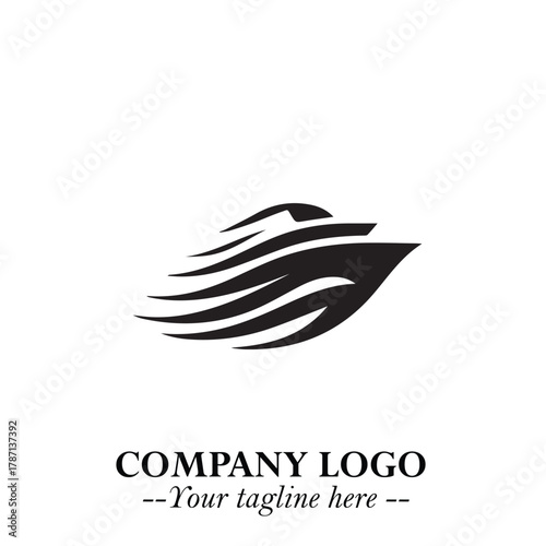 © Ilham, Obraz premium Ship Moving Fast Logo Symbol in Black on the White Background with Modern Maritime Design