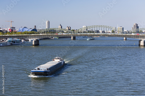 Fototapeta premium Ship On Rhine River in Cologne, Germany