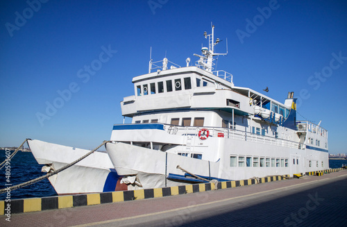 © Наталия Червоненко, Naklejka premium ship on the pier, boat moored to the shore, seaport
