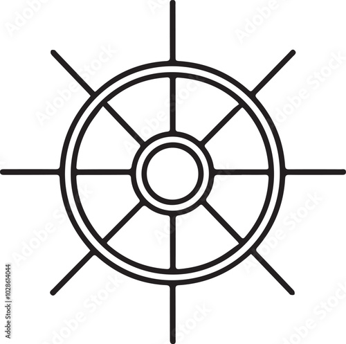 © Vector Art 123, Obraz premium Ship steering vector illustration outline icon. Silhouette art of steering.
