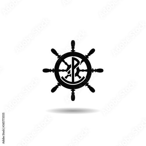 Obraz premium Ship steering wheel, anchor icon with shadow