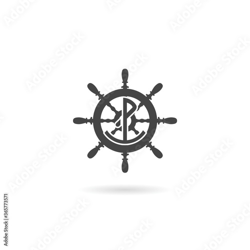 Obraz premium Ship steering wheel, anchor icon with shadow