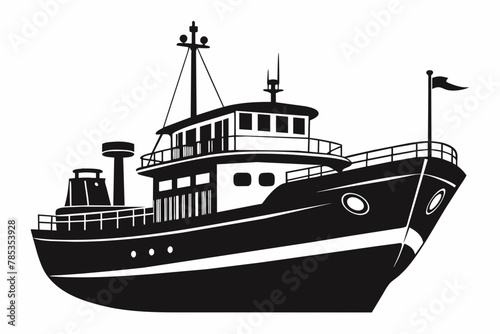 © Chayon Sarker, Fototapeta premium Shipping boat black silhouette vector