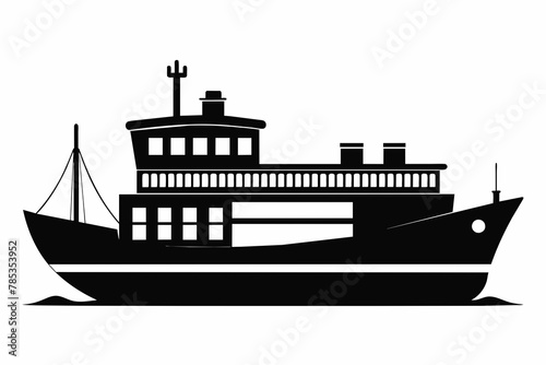© Chayon Sarker, Obraz premium Shipping boat black silhouette vector