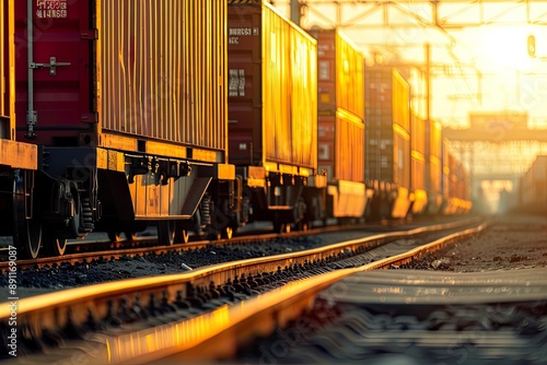 © Umar, Obraz premium Shipping Container Loaded onto Freight Train