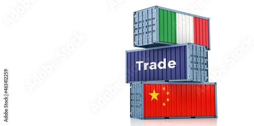 © Marius Faust, Obraz premium Shipping containers with China and Italy national flag. 3D Rendering